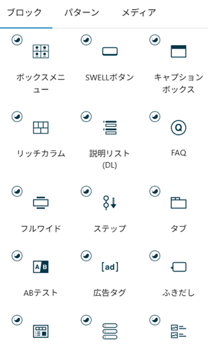 SWELLにしかない独自のブロックが豊富に用意されています↓