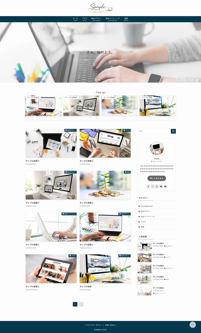 SWELLは、「サイト型トップページ」といってトップページをホームページのようにするが流行っていますが、あえて普通のブログ型にしました。