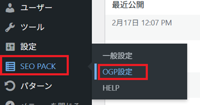 次に「SEO PACK」→「OGP設定」↓