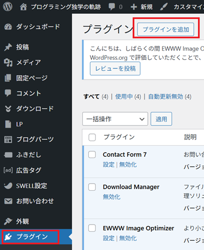 「プラグイン」→「プラグインを追加」↓