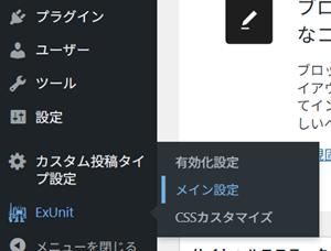 管理画面左メニューバーの「EXUnit」→「メイン設定」↓