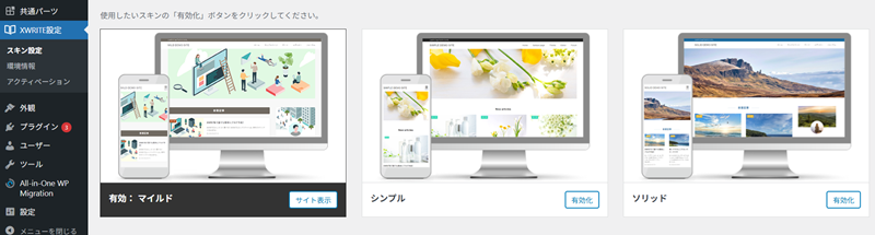 まずスキンでおおよそのデザインを決めてから、先ほどの外観→カスタマイズで細かな部分を作っていくイメージですね。