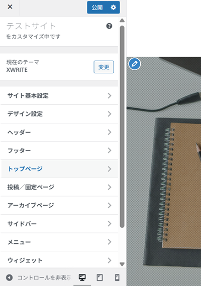 メインビジュアル(トップ画像)のカスタマイズ↓