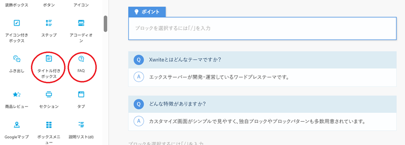 こんないいブロックパターンが用意されているのはXwriteだけですよ。